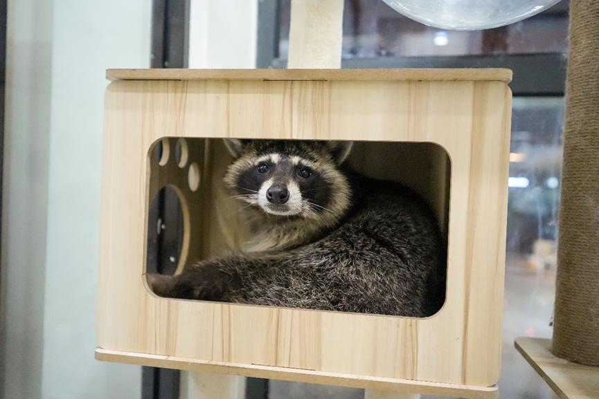 95后大学生小郭在临泉县城开了一家猫咖馆,店里养着十几只品种各异的猫咪,还有一只小浣熊和一只蜜袋鼯。
