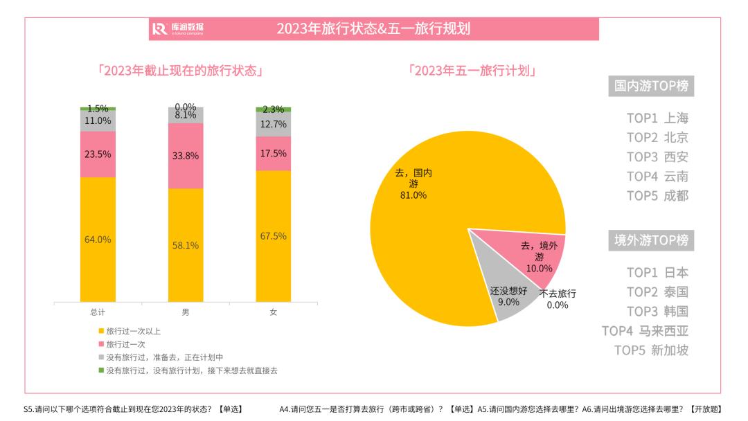 由于五一假期比较短暂,即使多请几天假,也无法凑出超长假期,大家普遍还是选择了国内行,其中上海、北京、西安、云南、成都,成为大家旅行TOP榜前5名。