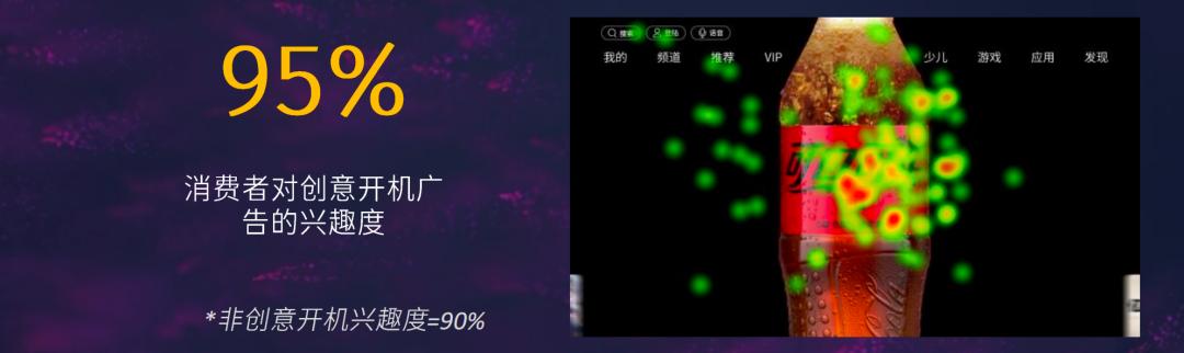 群邑智库《2023OTT商业化白皮书》显示,根据消费者眼动数据,消费者对创意开机广告的产品兴趣度和关注度达到95%,高于非特效开机。