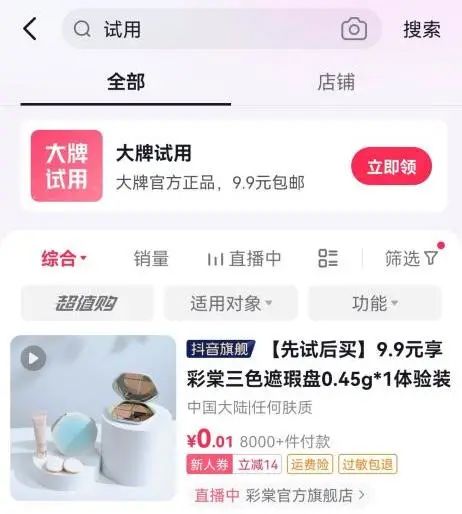 无论是天猫U先还是抖音试用,对喜欢尝试新鲜护肤品或者彩妆的人来说,这些平台分频道无疑是“日常必刷”区域。