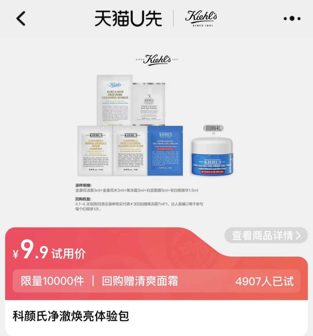 “9.9元科颜氏星品体验包”