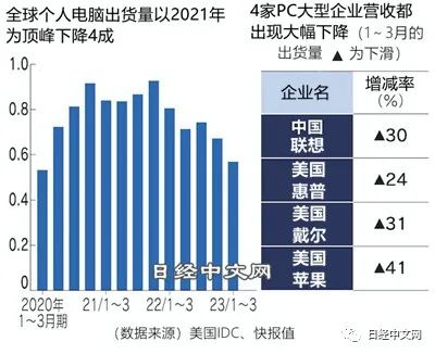 其它大型半导体企业也同样处于严峻局面。台积电的竞争对手韩国三星电子1~3月的营业利润(快报值)下降96%,降至6000亿韩元。美国英特尔和韩国SK海力士也在2022年10~12月陷入最终亏损,1~3月有可能进一步恶化。