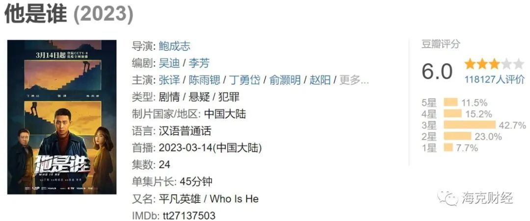 在《狂飙》收官一个多月后,优酷才主推同样由演员张译主演的悬疑剧《他是谁》。3月14日开播后,该剧刷新了优酷2019年以来的用户拉新、会员收入等纪录,却由于剧情高开低走,收官时还因“烂尾”上了热搜。时下其豆瓣评分已从开播时的8分以上降到了6分。