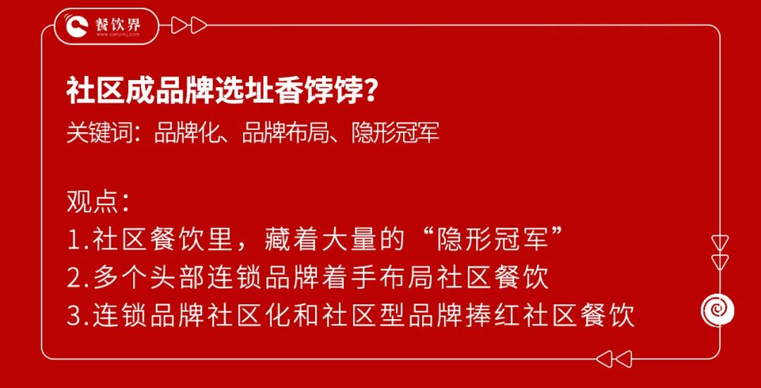 将餐饮人的目光重新拉回社区的,是一批“品牌”。当超级品牌重新重视社区阵地,当社区餐饮中跑出超级品牌,无论是哪一种,都向餐饮人释放出一个明确信号:社区餐饮正在走向品牌化,而在品牌化的过程中,很多品牌已经吃到了红利。