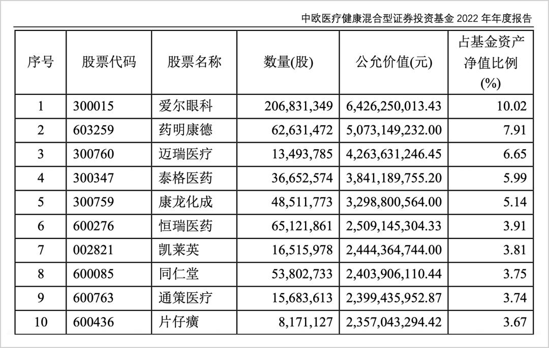 ▲图源:中欧医疗健康混合型证券投资基金,2022年年度报告