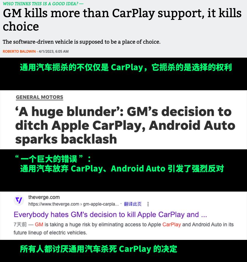 不过啊,通用阉割 CarPlay 的新闻一出,我都不说大家伙,看看媒体们的态度就知道有多不得民心了。