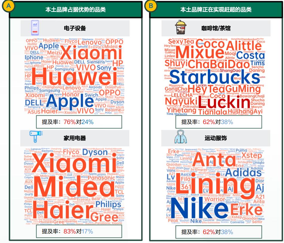 接下来,我们将从各个细分品类上去看一看中国消费者眼中的本土品牌与海外品牌。