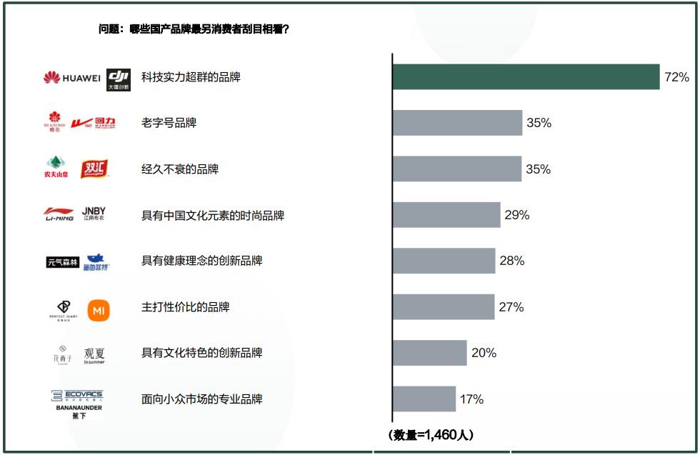 72%的消费者选择了“科技实力超群的品牌”,35%的消费者选择了“老字号品牌”“经久不衰的品牌”。如今,当中国制造向中国“智”造转变,当国潮风的盛行点亮崛起的信号,一个本土品牌与海外品牌“共舞”的新时代已悄然在我们面前展开。