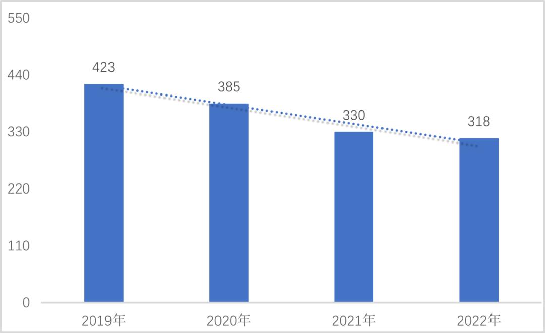◎图1:大众中国2019~2022年销量(单位:万辆),资料来源:大众历年销量数据汇总