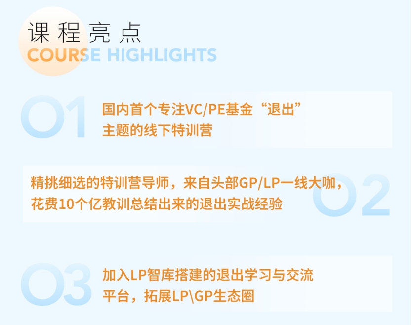 针对行业的迫切需求,LP智库联合36氪集聚在“退出”具有丰富实战经验的资深投资人,打造了为期两天的实战特训课程。本次培训课程是头部机构花费十个亿总结出来的退出实战经验与教训。