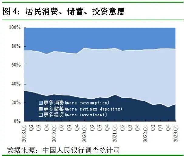 据央行调查,一季度倾向于消费和投资的居民,各占23.2%、18.8%,环比均有小幅增长 。