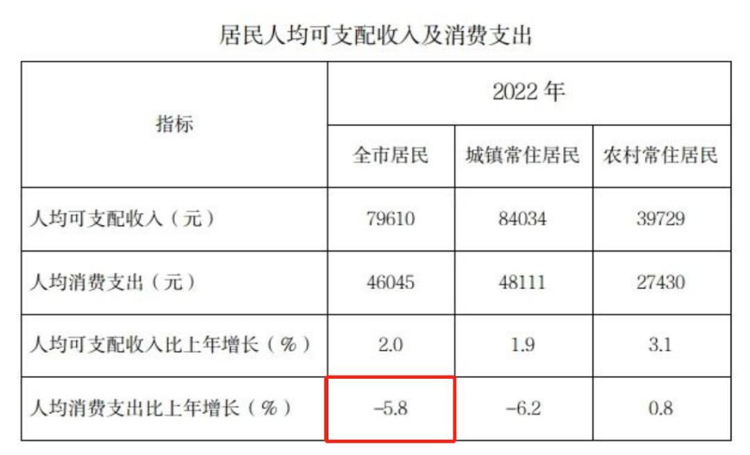 这也解释了为什么2022年上海的人均消费支出仅维持在4.6万元,相比2021年的4.89万元,消费率同比增长-5.8%。