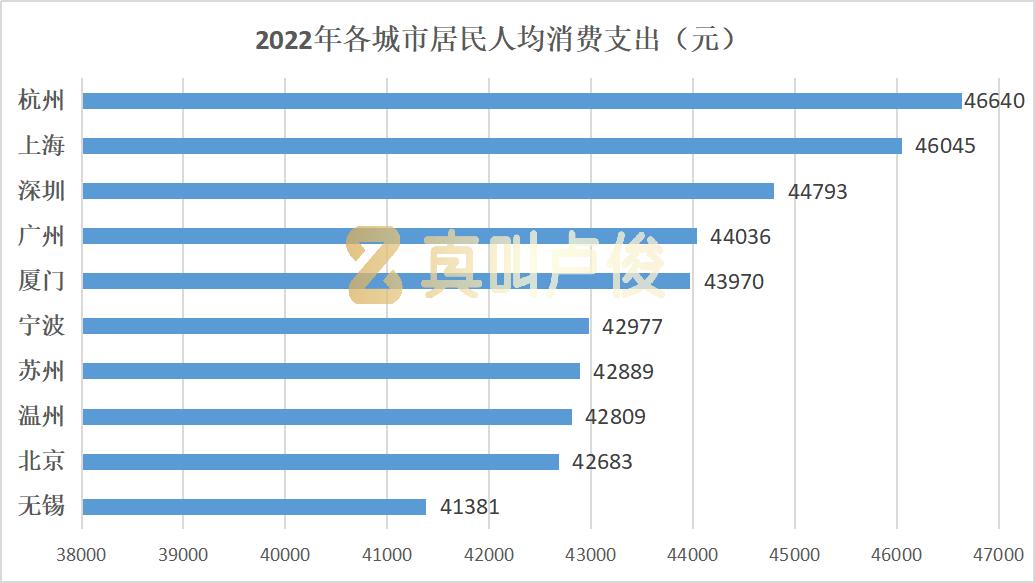2021年杭州人均消费支出的排名还在第三位,今年连跃两座城市,首次居于首位 。