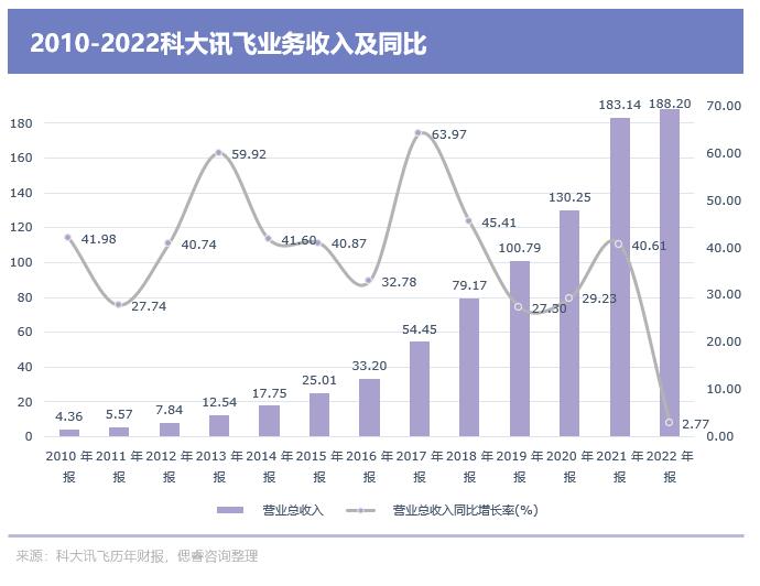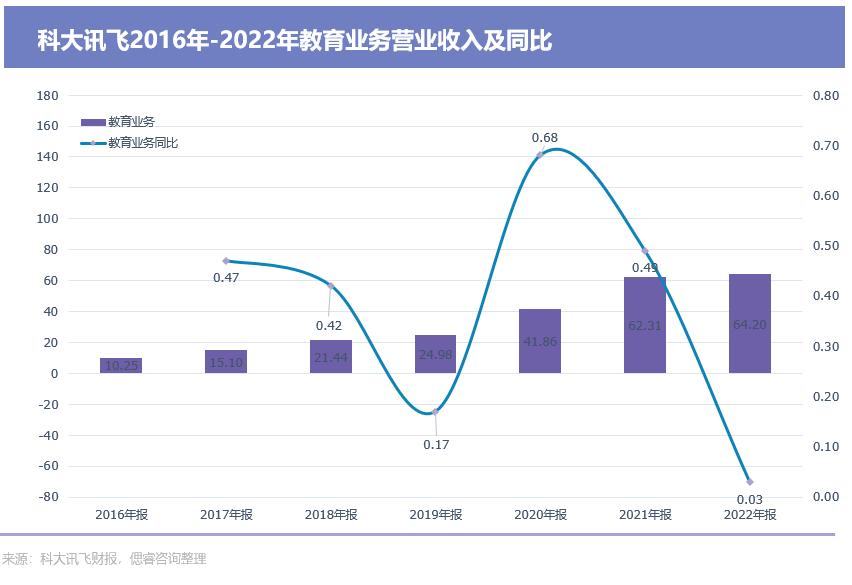2022年,科大讯飞根据地教育板块失守,尽管多个业务进展不错,但营收占比过少难以挑起大梁。由此,2022年,科大讯飞实实在在跌到了业绩低谷。