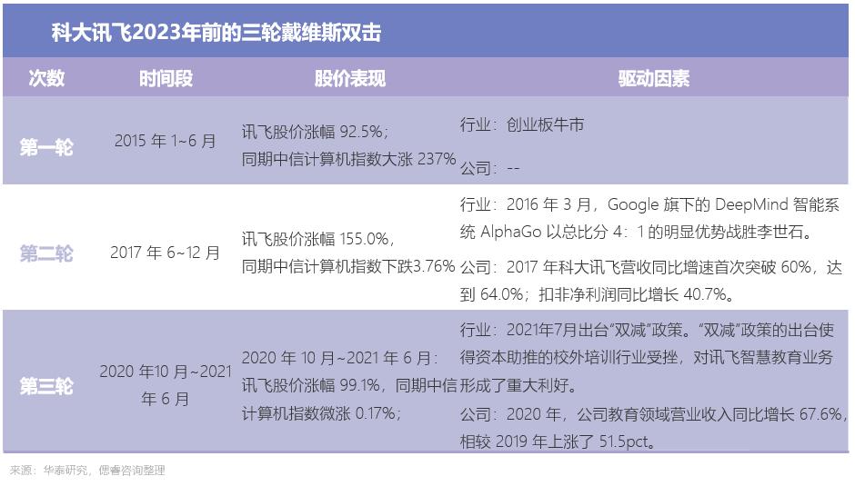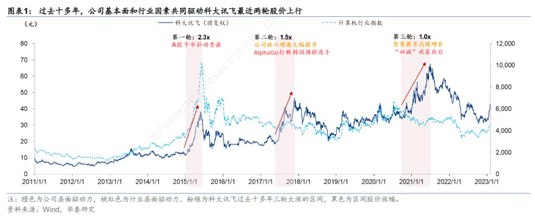 (科大讯飞前三轮戴维斯双击时刻 图源:华泰研究)
