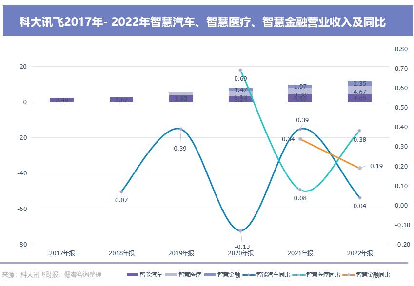 分业务来看,2022年科大讯飞各业务,仅有智慧医疗保持向上增长。