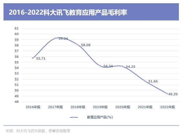 同时,其主营业务毛利率步步败退:从2017年~2021年,公司教育应用产品的毛利率一路下滑。