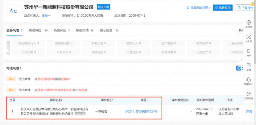 研发嫌疑“注水”同时,华一股份还因“侵害计算机软件著作权纠纷”被告上法院。