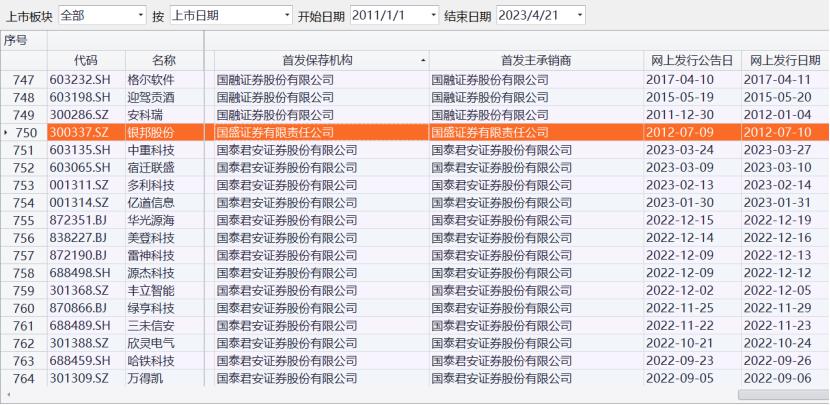 国盛证券IPO业务极少