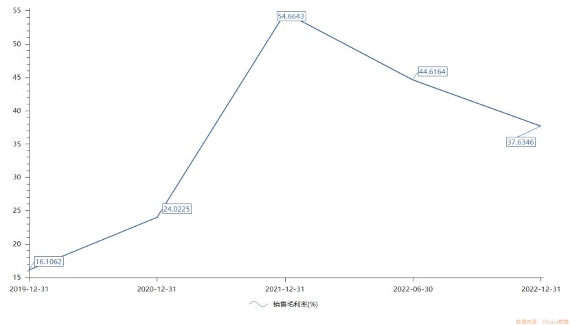 毛利率情况也类似,2019-2021年,华一股份毛利率分别为16.11%、24.02%、54.66%;但2022上半年和全年毛利率,分别降至44.62%和37.63%。