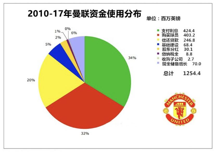曼联2010-17年在转会市场买人花掉的4亿英镑还不及用来付利息的4.24亿