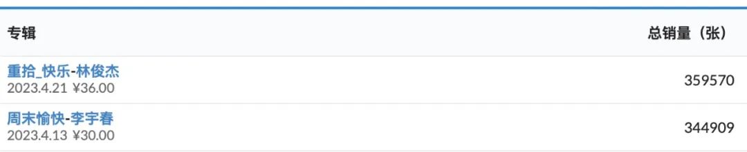 然而,尽管华语歌手们纷纷拿出新作,市场给予的反馈却相对冷淡。从数字专辑销售网统计的数据来看,诸多作品的销售数据不尽如人意。截至发稿,林俊杰《重拾_快乐》目前仅卖出约36万张,李宇春《周末愉快》发行8天累计只卖出34万张左右。