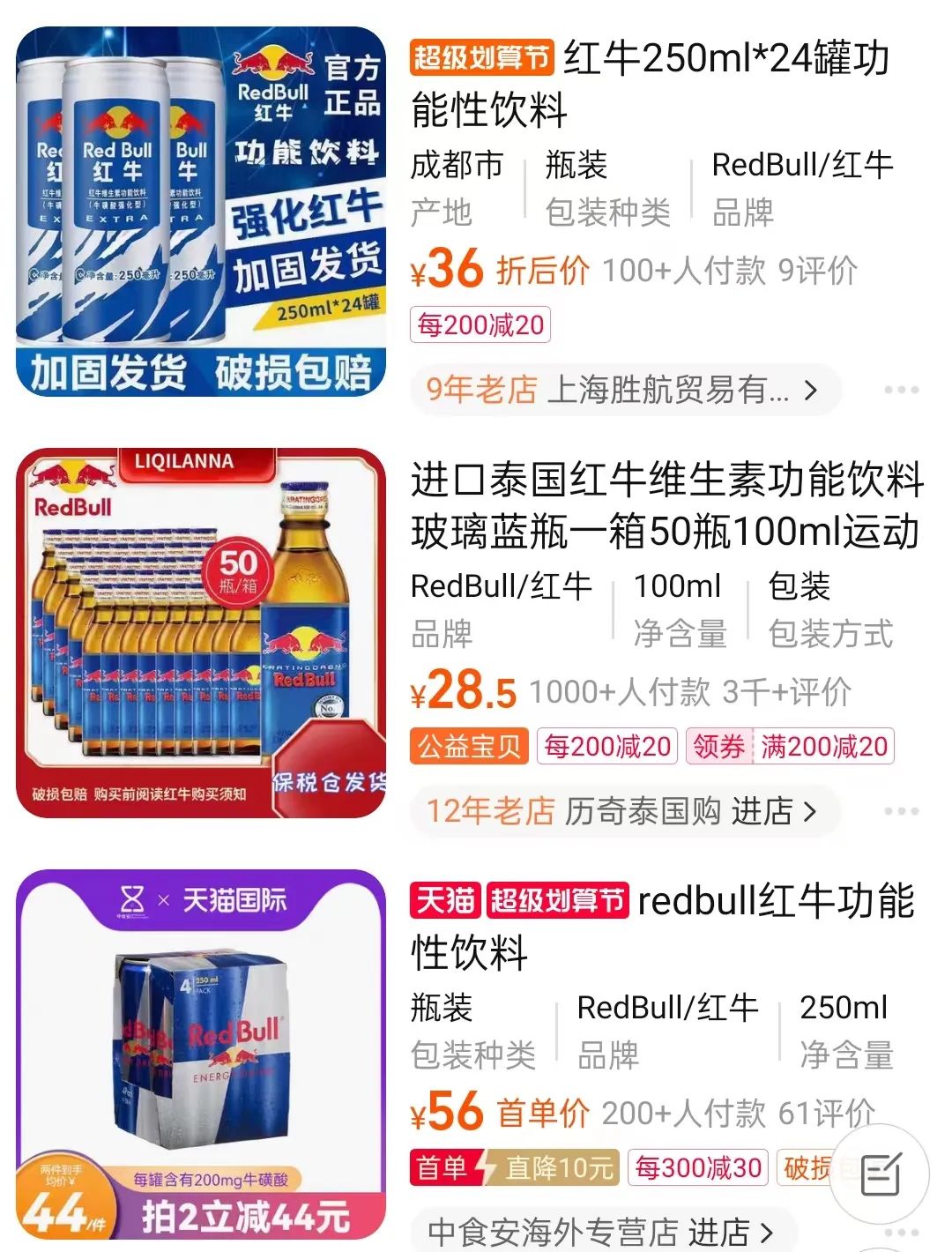 狐妹也去各大电商平台看了一下,红牛还活得好好的,也没有下架。