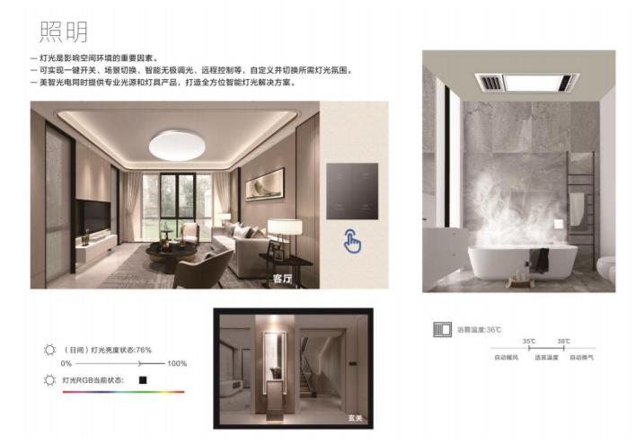 美智光电主要为客户提供照明及智能前装产品。其中照明产品包括电源、家用、商用三类;智能前装涵盖智能网关、面板、门锁等。其产品广泛应用于住宅、酒店、商业综合体、学校、医院等场景中。