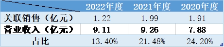值得注意的是,美智光电今年的关联交易大幅降低。招股书显示,公司的关联销售净额从2020年的1.91亿元,下降至2022年的1.22亿元,下降了36%,其占营业收入比也从24.2%下降至最新的13.4%。