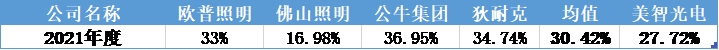行业方面,2021年美智光电毛利率为27.72%,低于行业平均值。