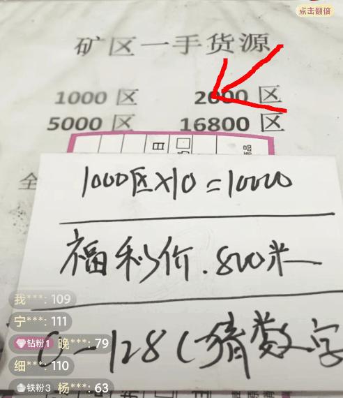 因为我一进去,就撞上了一轮刚开始的赌石。主播说老粉参与这轮赌石需交 5 万元,而新粉有优惠,只需 1 万。限定 5 人上车( 后面会解释为何是 5 人 ),若能开出翡翠,那么大家平分这块翡翠带来的收益。