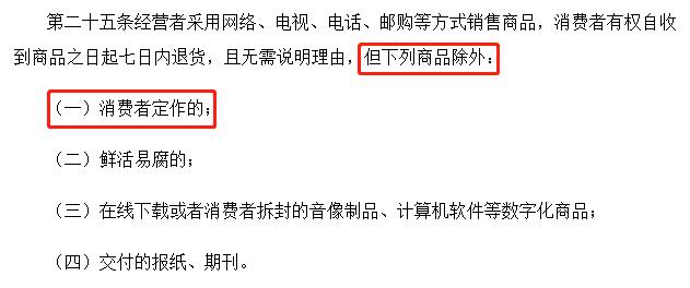 上图这位赌石直播间客服所提到的《 客户权益保护法 》,其实就是《 消费者权益保护法 》,里面提到的第二十五条的条款如下: