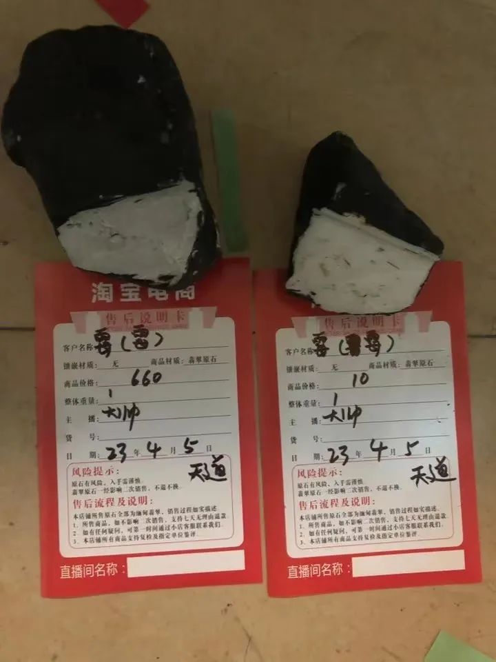 不过像我这样要求寄回原石,还是极少数的情况,更多时候,原石在切开后发现没中,就会被主播直接丢掉。之后客服会联系你,发个小礼品作为象征性补偿,好把整个交易流程走完。