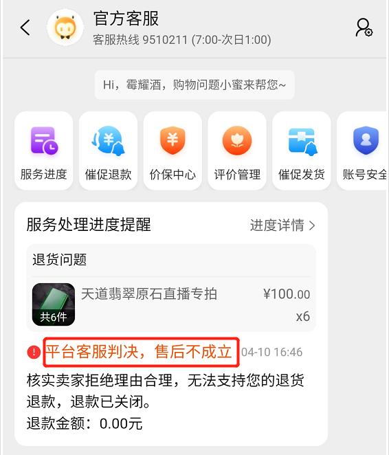 按说,若是对交易有所怀疑,是可以要求淘宝客服介入的对吧?所以在第一次退款被拒后,我申请了淘宝客服裁决。