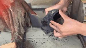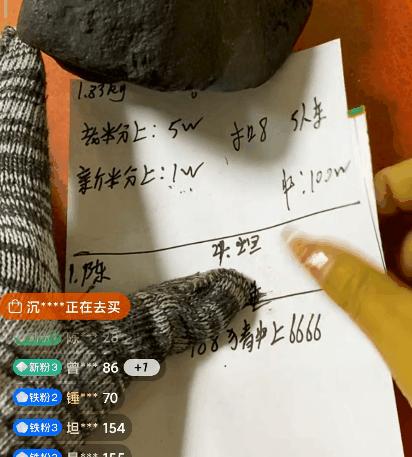 点进去后,一般会看到屏幕里有块黑乎乎的石头,以及一张写着字的卡片,而不露脸的主播隔着屏幕在后面声嘶力竭地吆喝着。