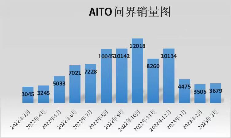 但到了2023年后,问界交付量和销售量面临断崖式下跌。从图中可以看到,从2022年11月份后,问界的销量就从过万后,环比下跌50%多,2月份又环比下降21.98%,AITO问界2023年3月汽车销量只有3679辆。