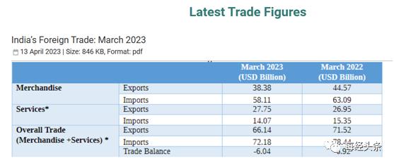 按季度统计,记者根据印度商工部公布的各月份出口数据加总计算得出,2023年一季度,印度出口总额1082.85亿美元,同比下降7.41%。