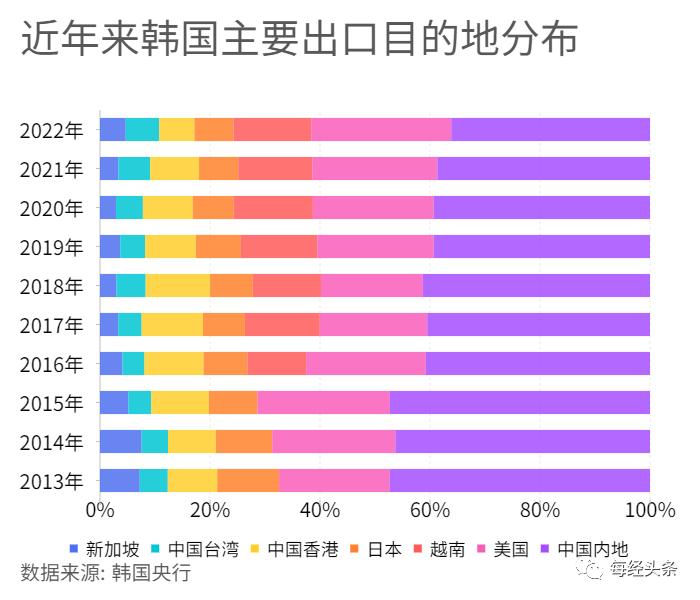 今年2月,韩国贸易协会在“出口低迷原因分析和应对方向”说明会上表示,考虑到出口降幅,韩国出口低迷相对更加严重。韩国贸易协会副会长郑晚基在当天的说明会上表示,这主要是因为韩国出口产业由对经济变动敏感的中间产品为主的产品群构成。