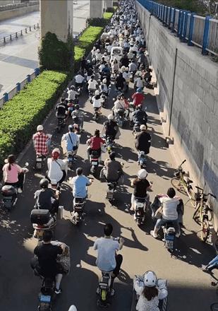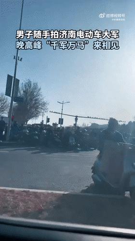 因为电动车多成军阵,在济南的十字路口,电动车主们开出了千军万马的杀气,全村的人加起来可能都没一个路口的人多。