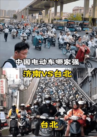 有人把济南电动车大军的视频与台北的机车大军作对比,这么看,似乎济南似乎还是输了一筹。
