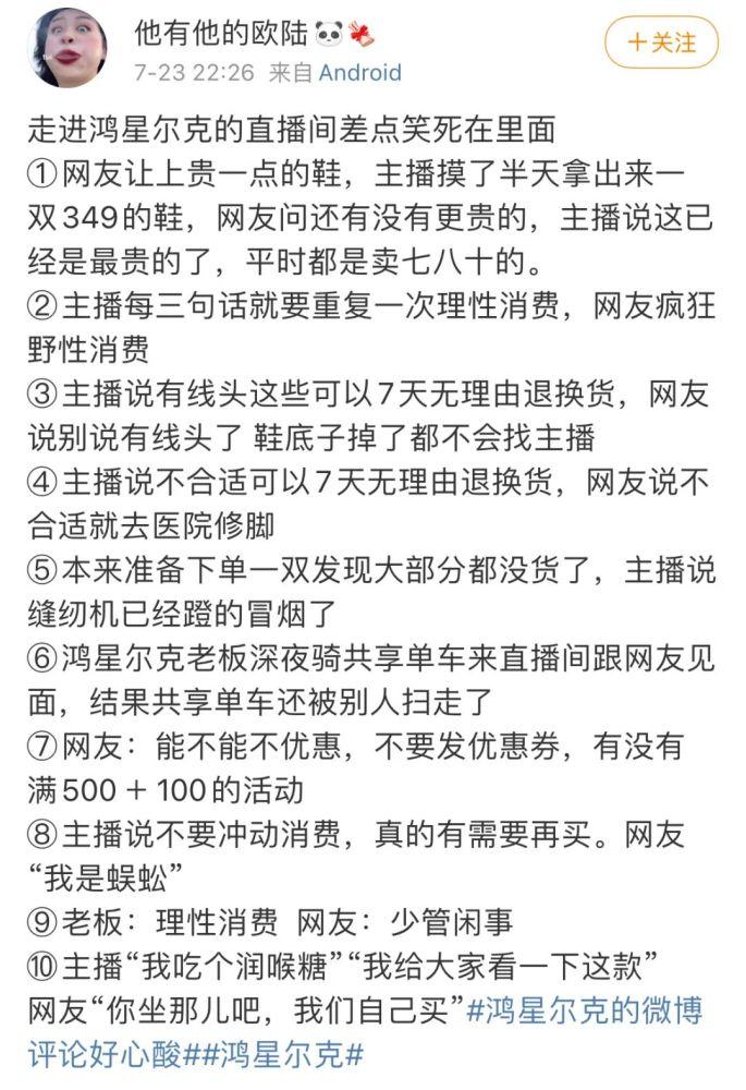 这波营销被网友评价为“乍看有些意外,细想合乎情理”。自从2021年河南水灾期间“破产也要捐款”并由此尝到网友“野性消费”的甜头之后,鸿星尔克就认准了“情怀营销”的套路并屡试不爽。