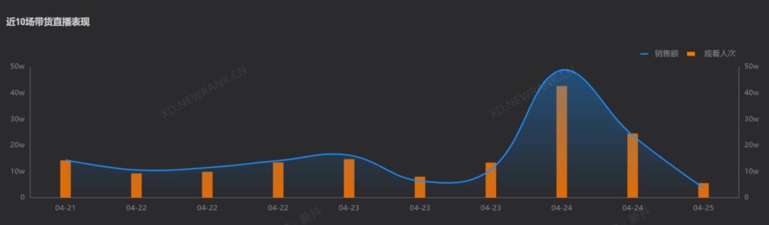 根据新抖数据,4月21日及之后两天的鸿星尔克抖音直播间,无论是观看人数还是销售额均没有什么波澜。24日,数据反倒是攀上了一个小高峰,但这一天的直播主题与情怀无关,而是首次登陆直播间的“芷境1.0”竞速跑鞋。这款鞋定价699元,是鸿星尔克最贵的产品,也代表了鸿星尔克最高的技术水平。新抖数据显示,这款跑鞋当天就成为直播间销量和销售额最高的产品。