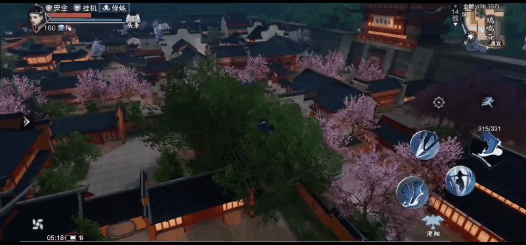 不只是起飞,在落地的设计上,手游也提高了对操作的容错度。相较于剑三轻功刚开放时玩家纷纷摔断腿的名场面,在手游中,虽然依然有着气力值的限制,但多数只是限制了飞行的持续时间,气力值耗尽后角色会自动缓慢落地,在坠落键的保护下,许多手游中甚至可以实现百米高空一秒安全着陆。