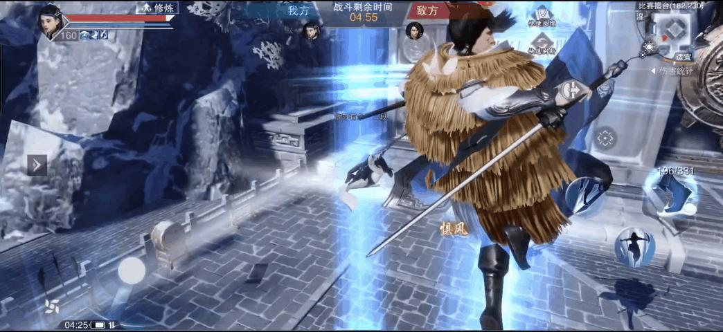 而不同于PC端有大屏幕和充足的键位来实现多技能图标栏和复杂的连招操作,移动设备的限制,使得各种技能图标需要尽量简化并合理布局,以免影响操作以及遮挡视野。较多的战斗技能尚且需要借助轮盘切换图标,或是由玩家自主配置,轻功技能更无法实现端游中不同连招带来的万般变化,而是简化后放进了一套相对固定的流程中,玩家只需要在合适的时机点同一个图标,就能触发完整的多段式轻功。