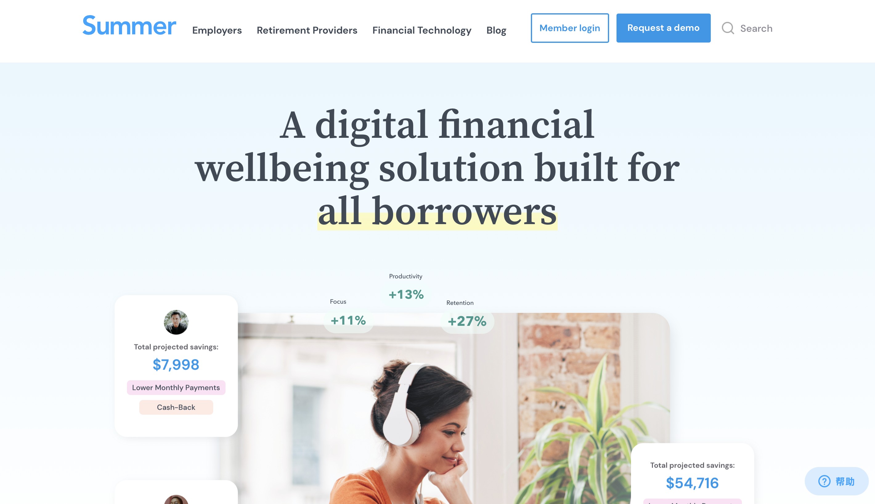 「Summer」在2019年完成了1000万美元的A轮融资,致力于帮助借款人全面了解其学生贷款情况,以及如何以最具效益的方式偿还贷款。如今,该公司已与多家金融机构、雇主和组织合作,帮助员工规划学业、降低学生贷款还款负担,并优化退休储蓄。