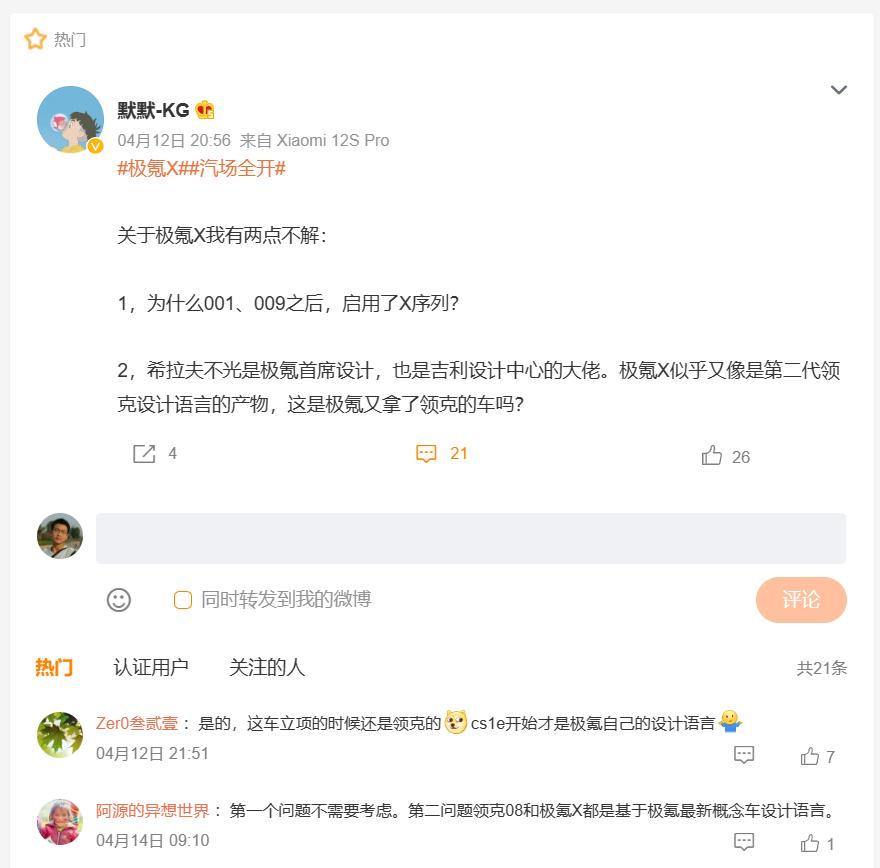 吉利集团高级副总裁杨学良在社交媒体表示:“(极氪)不会出20万以下的产品”,来源:杨学良的微博截图
