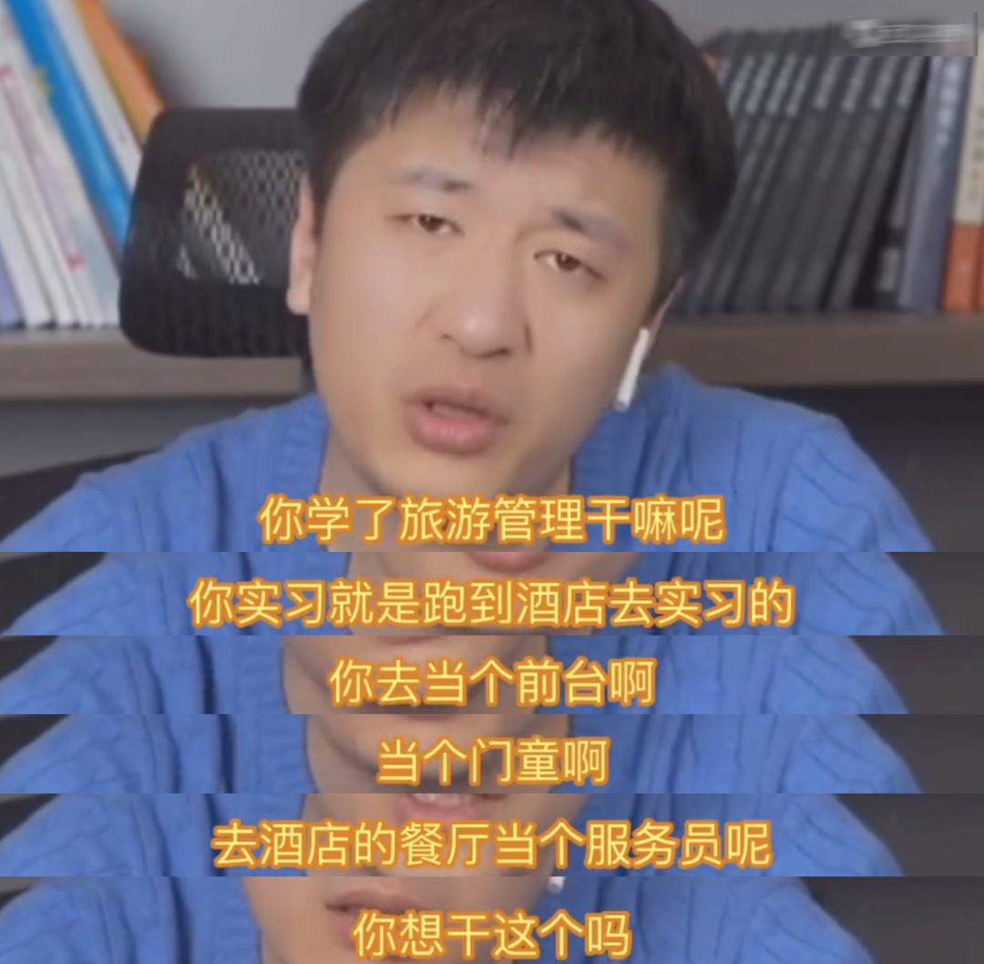考研名师张雪峰甚至直言,“学旅游管理(酒店管理),实习就是跑到酒店实习,去当个前台,当个门童,去酒店的餐厅当个服务员,你想干这个么?”