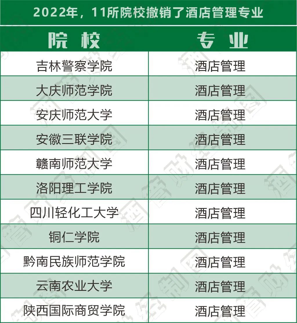 教育部最新发布的《2022年度普通高等学校本科专业备案和审批结果》显示,全国高校撤销925个专业,共有11所院校撤销了酒店管理专业。