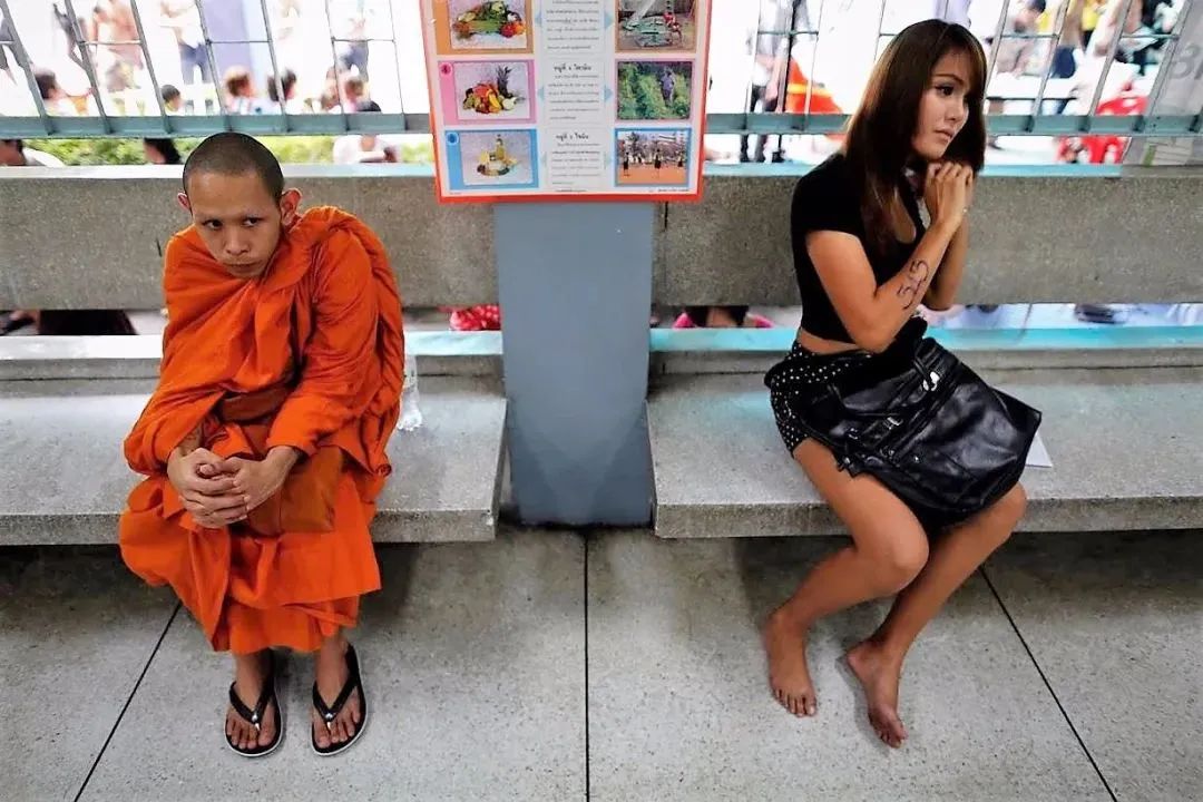 一位穿着袈裟的泰国僧人前来抽签,看似沉着冷静,像是已经参透尘世、不悲不喜了,结果抽到红签——