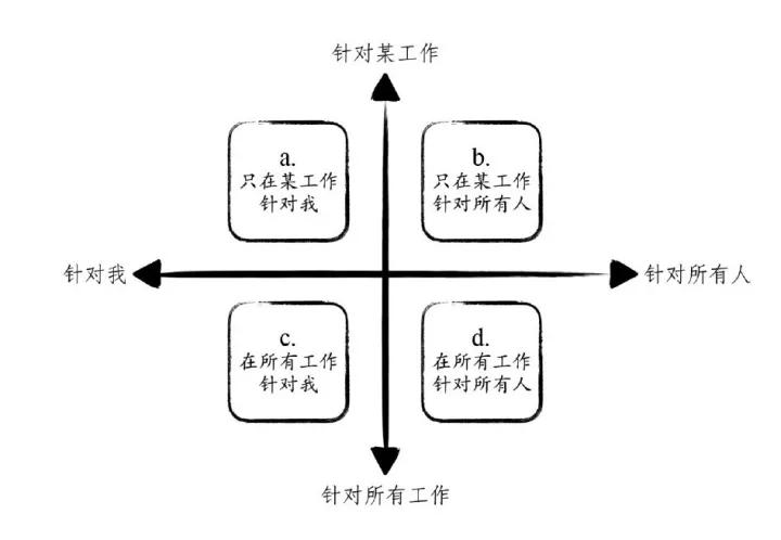《做出好选择》一书中,作者提出了一个“上级挑刺矩阵”,以领导在做人、做事时的状态做评价,划分出了四种情况。
